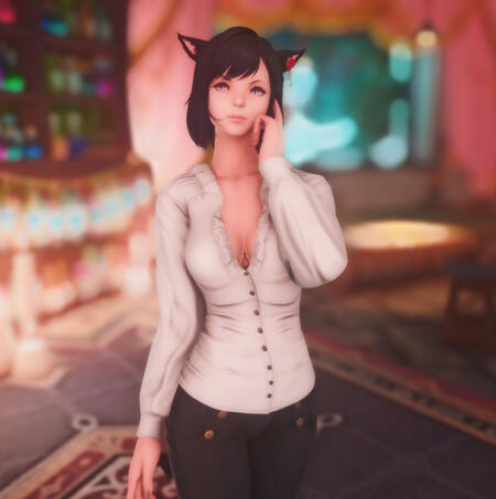 Hilde grew up away from her family, without a name. One day, a friend gave her the name Hildegard, while she choose the surname Valentine. While she would learn her birth later in life, she still uses her friend's chosen name - it feels weird otherwise.She fills many roles: cook, seamstress, a fledgeling alchemist... she's not a master at any particular thing, but is a woman of many hobbies (most of which she tries and then drops for moons at a time). She can be a little shy or reserved at first, but tends to warm up to people quickly as she gets to know them!She is a devout follower of Menphina, the Lover.She is a natural blonde, but most will never know this - she is always visiting the Aesthetician to maintain a different hair color (usually favoring pink or black).She is a kind soul. Cheerful and friendly to a fault, She always sees the good in people no matter what. She tries to spread joy and love to all she comes across, striving to help the less fortunate in any way she can.